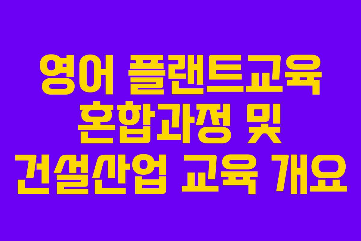 영어 플랜트교육 혼합과정은 건설산업교육원의 핵심 프로그램 중 하나로, 건설산업의 기술과 영어 능력을 동시에 향상시켜 주는 교육입니다. 이 글에서는 해당 과정과 건설산업교육원에서 제공하는 다양한 교육 프로그램에 대해 자세히 살펴보겠습니다.