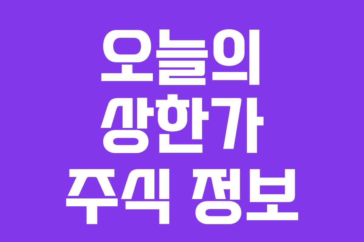 아래 표는 오늘의 상한가 종목과 관련된 정보를 정리한 것입니다.