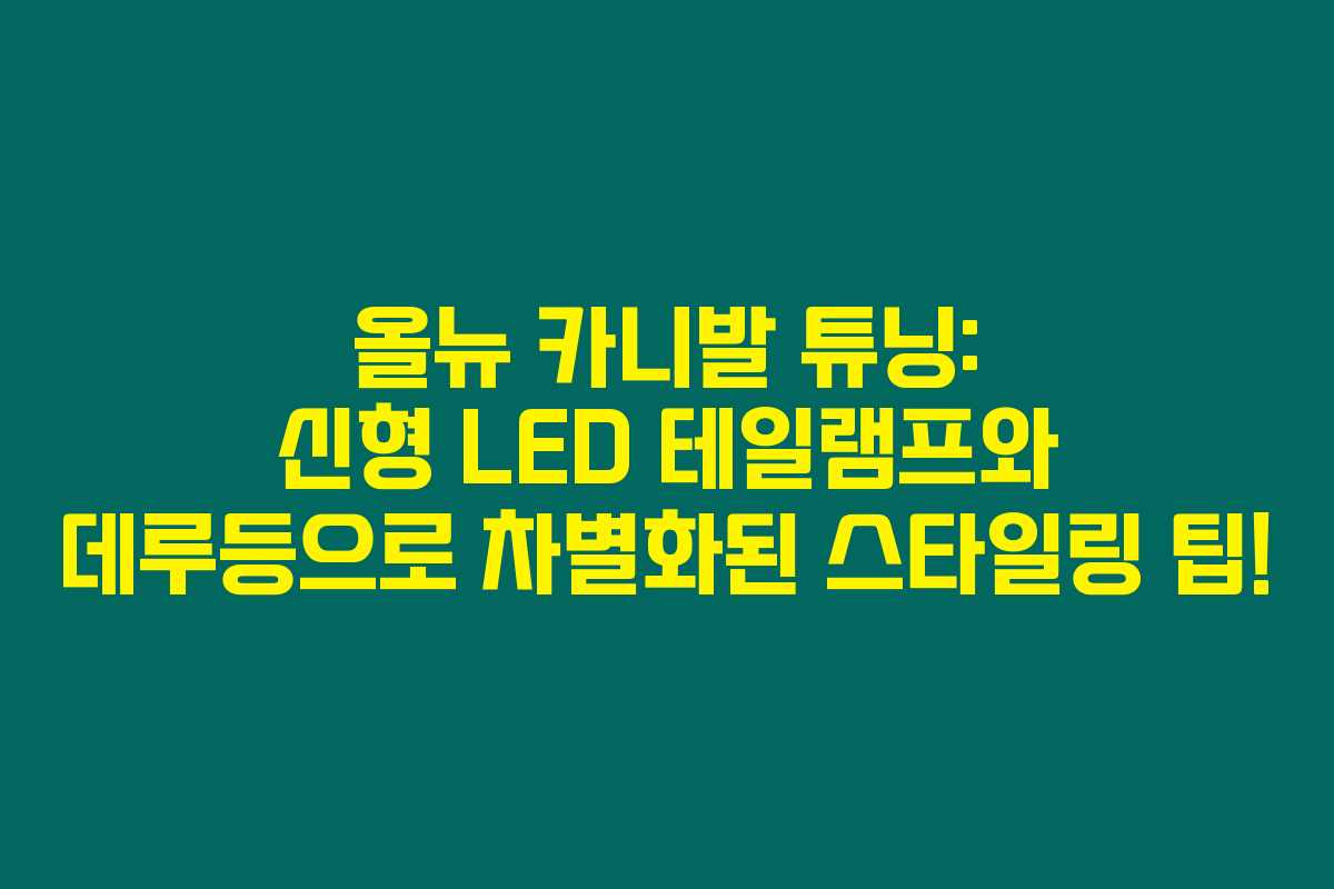 올뉴 카니발을 더욱 세련되게 꾸미고 싶으신가요? 신형 LED 테일램프와 데루등 장착으로 크고 매력적인 자동차 분위기를 연출해 보세요. 이 글을 통해 올뉴 카니발의 매력을 한껏 살리는 팁을 소개해 드릴게요. 차량 외관을 완전히 바꾸고 싶다면 꼭 읽어보셔야 해요!