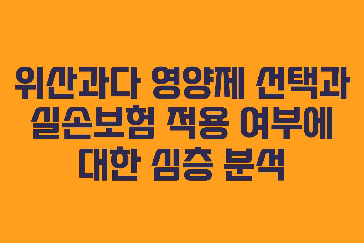 위산과다로 인한 영양제의 실손보험 적용 여부는 의사의 진단과 치료 목적에 따라 달라집니다. 일반적으로 ‘치료 목적’으로 처방받은 경우에만 보험이 적용된다는 점을 기억해야 합니다.