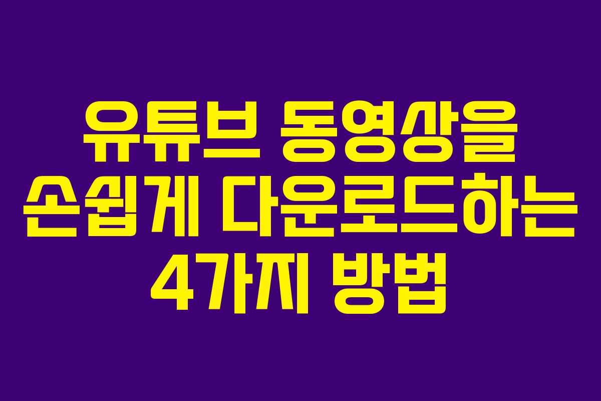 유튜브는 다양한 영상 콘텐츠를 접할 수 있는 플랫폼으로, 많은 사람들이 이곳에서 시간을 보내고 있습니다. 때때로 특정 영상을 소장하고 싶다는 생각이 드는 경우가 많습니다. 이번 글에서는 유튜브 동영상을 손쉽게 다운로드할 수 있는 4가지 방법을 소개하겠습니다.