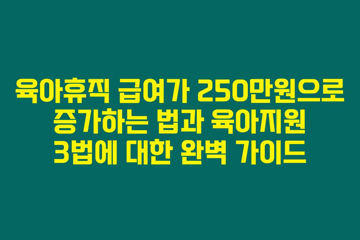 2024년부터 육아 부모들에게는 많은 변화가 예상됩니다. 제가 직접 확인해본 결과, 육아휴직 급여가 250만원으로 인상되고, 부모의 육아휴직 기간도 늘어나는 등 실질적인 지원이 강화될 예정이에요. 이 글에서는 육아휴직 급여 신청 방법과 함께 육아지원 3법에 대해 자세하게 알아보도록 할게요.