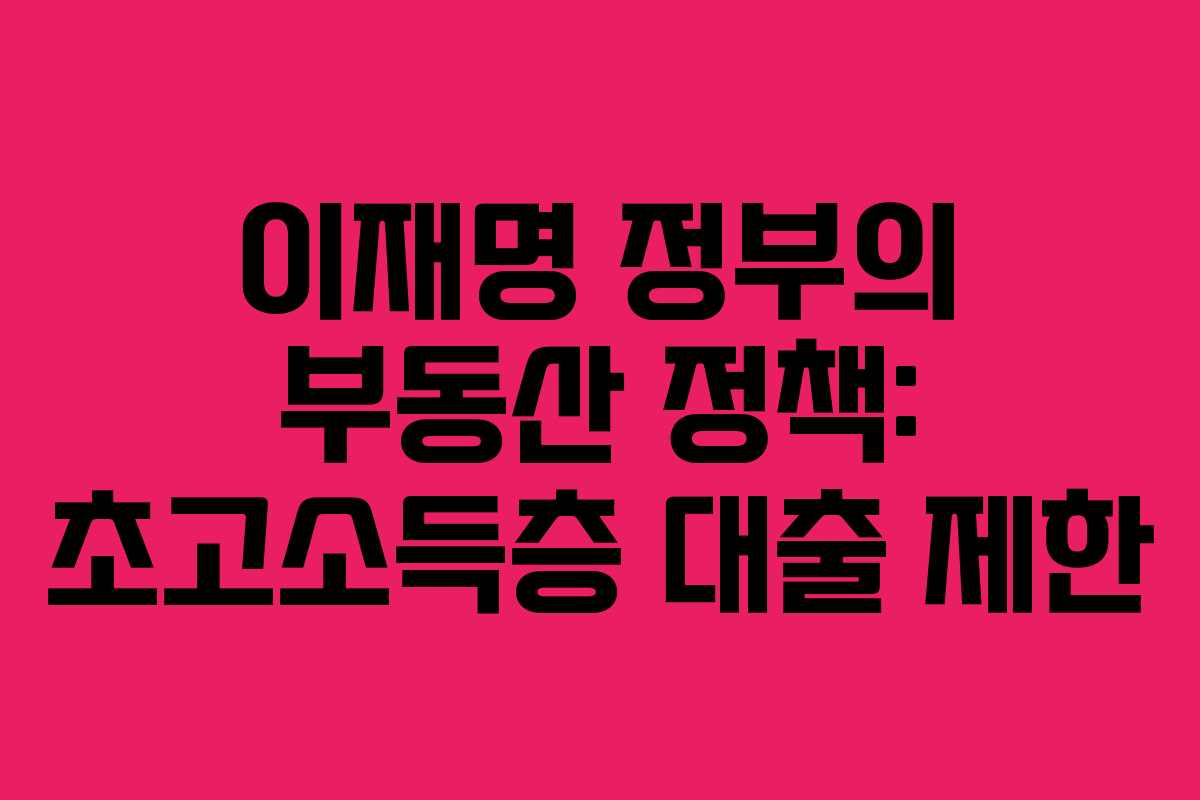 이재명 정부가 발표한 새로운 부동산 정책은 초고소득층을 겨냥한 대출 억제책으로, 최근 서울과 수도권의 집값 상승에 대응하기 위한 조치로 마련되었습니다. 이번 정책은 고소득층의 투기성 주택 구매를 차단하는 데 중점을 두고 있습니다.