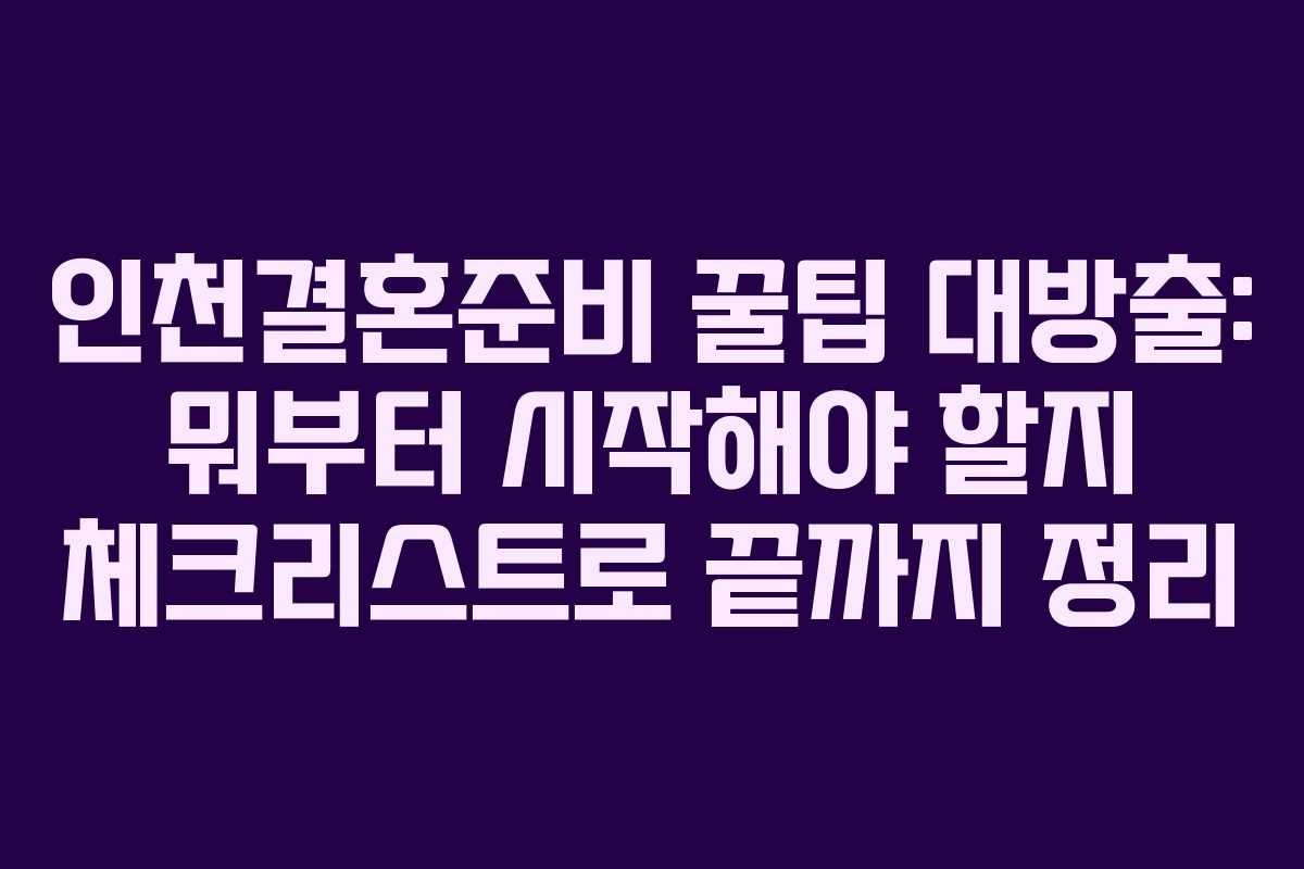 - 한눈에 보는 핵심 포인트와 실행 가능한 팁으로 구성한 인천결혼준비 꿀팁