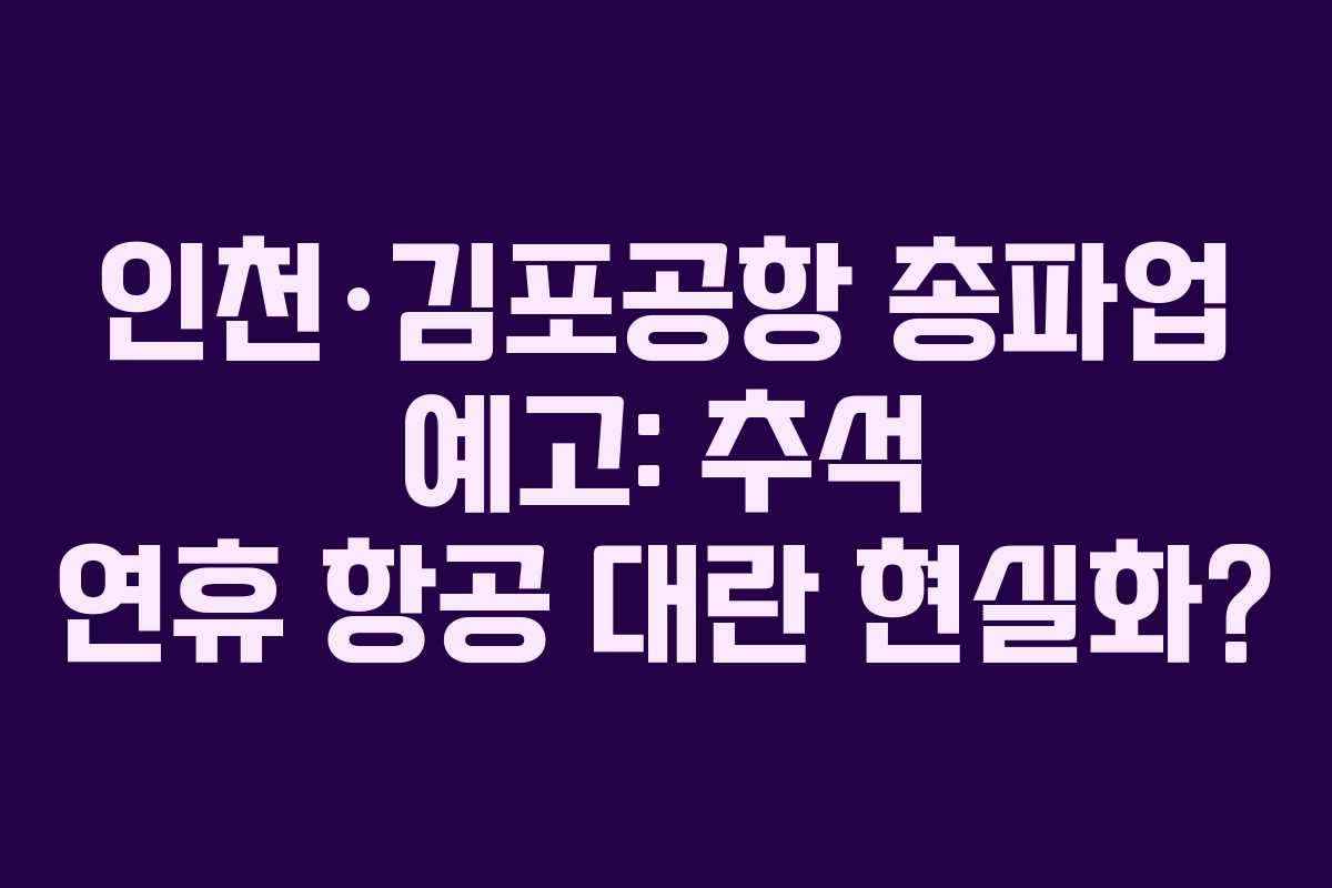 인천·김포공항 노동자들의 총파업은 추석 연휴에 큰 영향을 미칠 수 있습니다. 일정 조정, 교통수단 확보, 알림 서비스 활용 및 보험 확인 등을 통해 불편을 줄일 수 있습니다. 미리 준비하면 불확실한 상황에서도 안전한 여행이 가능합니다.