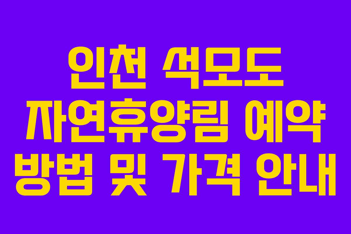 인천 석모도 자연휴양림은 아름다운 자연경관과 다양한 시설로 많은 사람들에게 사랑받고 있는 휴양 공간입니다. 이번 포스팅에서는 석모도 자연휴양림의 예약 방법과 입장료, 객실 요금에 대해 자세히 알아보겠습니다.