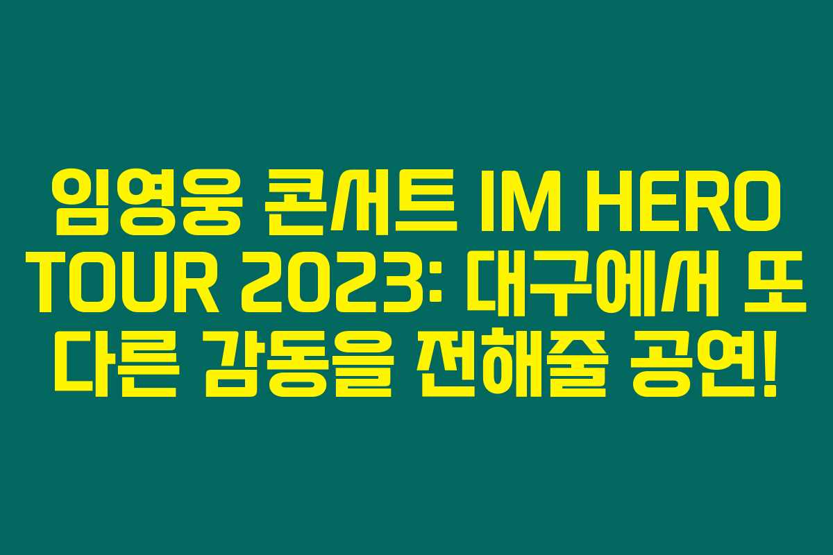 IM HERO TOUR 2023의 대구 공연은 다음과 같이 진행됩니다. 이 일정은 많은 팬들이 기다려온 특별한 시간이 될 거예요.