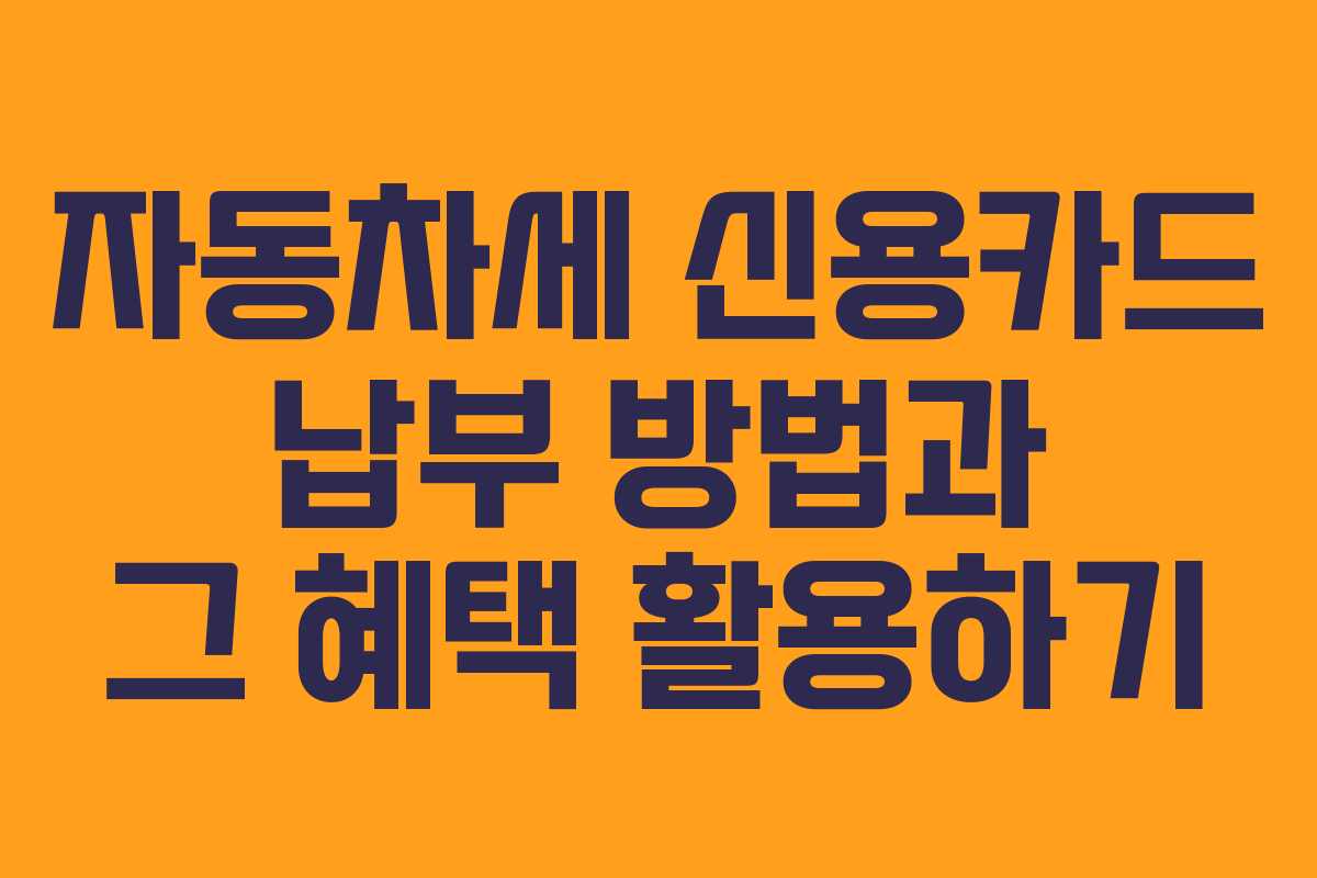 자동차세를 신용카드로 납부하는 방법과 그에 따른 다양한 혜택에 대해 알아보겠습니다. 특히 신용카드 포인트 적립, 무이자 할부 등 여러 가지 유용한 정보들을 제공합니다. 이를 통해 자동차세를 납부할 때 유리한 조건을 최대한 활용해보세요.