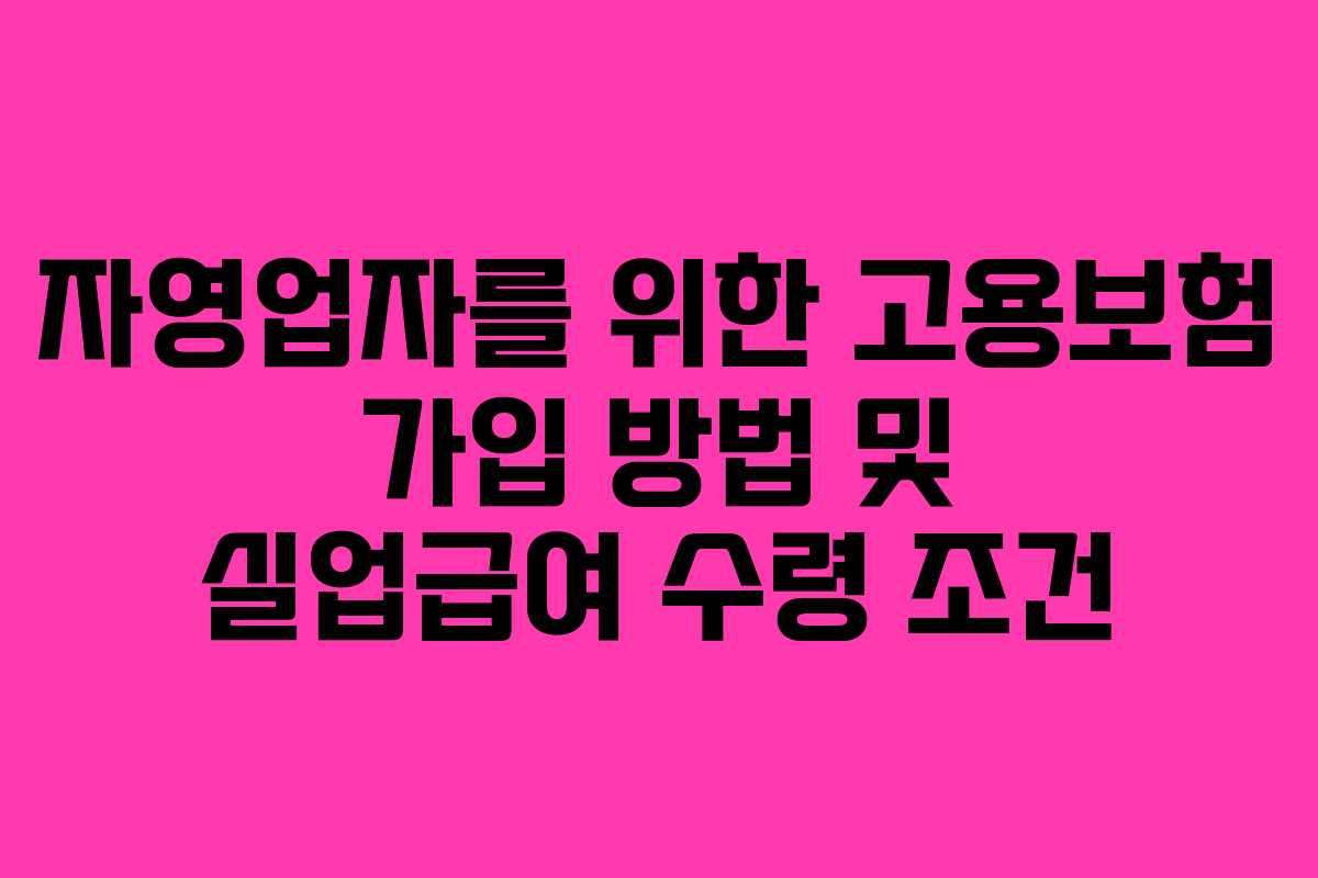 자영업자도 고용보험에 가입하여 실업급여를 받을 수 있다는 사실은 많은 분들이 간과하고 있습니다. 이 글에서는 자영업자가 고용보험에 가입하는 방법과 실업급여를 수령하기 위한 조건에 대해 자세히 설명하겠습니다.