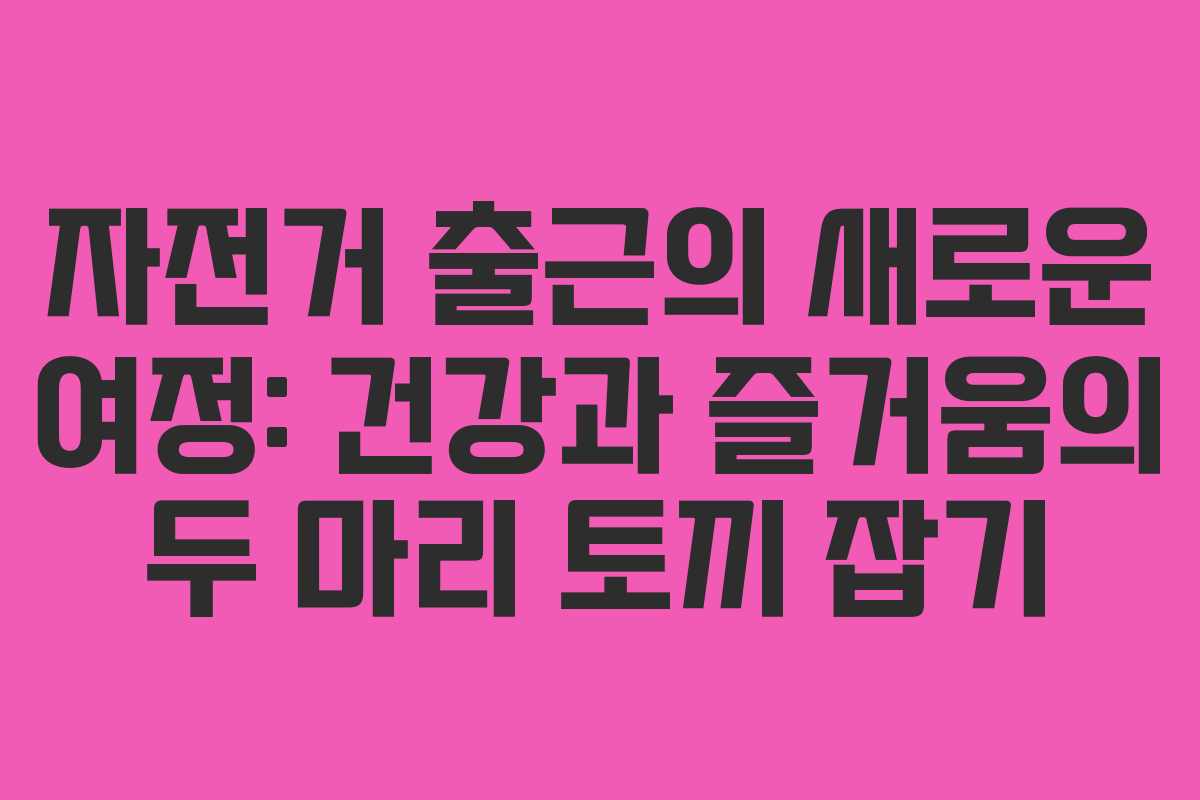 자전거 출근은 단순한 이동 수단을 넘어, 그 자체로 많은 성취감을 안겨준다. 매일 아침 자전거를 타고 출근하는 것은 자신에게 주는 작은 도전이자, 건강을 위한 투자로 이어진다. 이러한 경험은 매일의 일상 속에서 새로운 즐거움을 선사한다. 지금 즉시 자전거를 타고 출근을 시작해 건강과 즐거움을 동시에 누려보자.