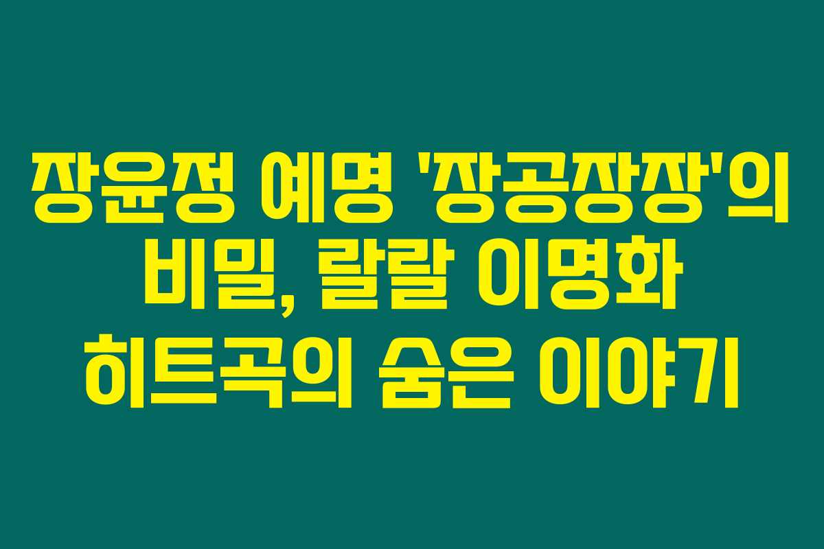 장윤정이라는 이름은 트로트 팬이라면 결코 생소하지 않은 이름이죠. 최근 ‘장공장장’이라는 독특한 예명으로 활동하며 더 많은 사랑을 받고 있는 그녀의 비밀을 알고 있다면, 아래를 읽어보세요.