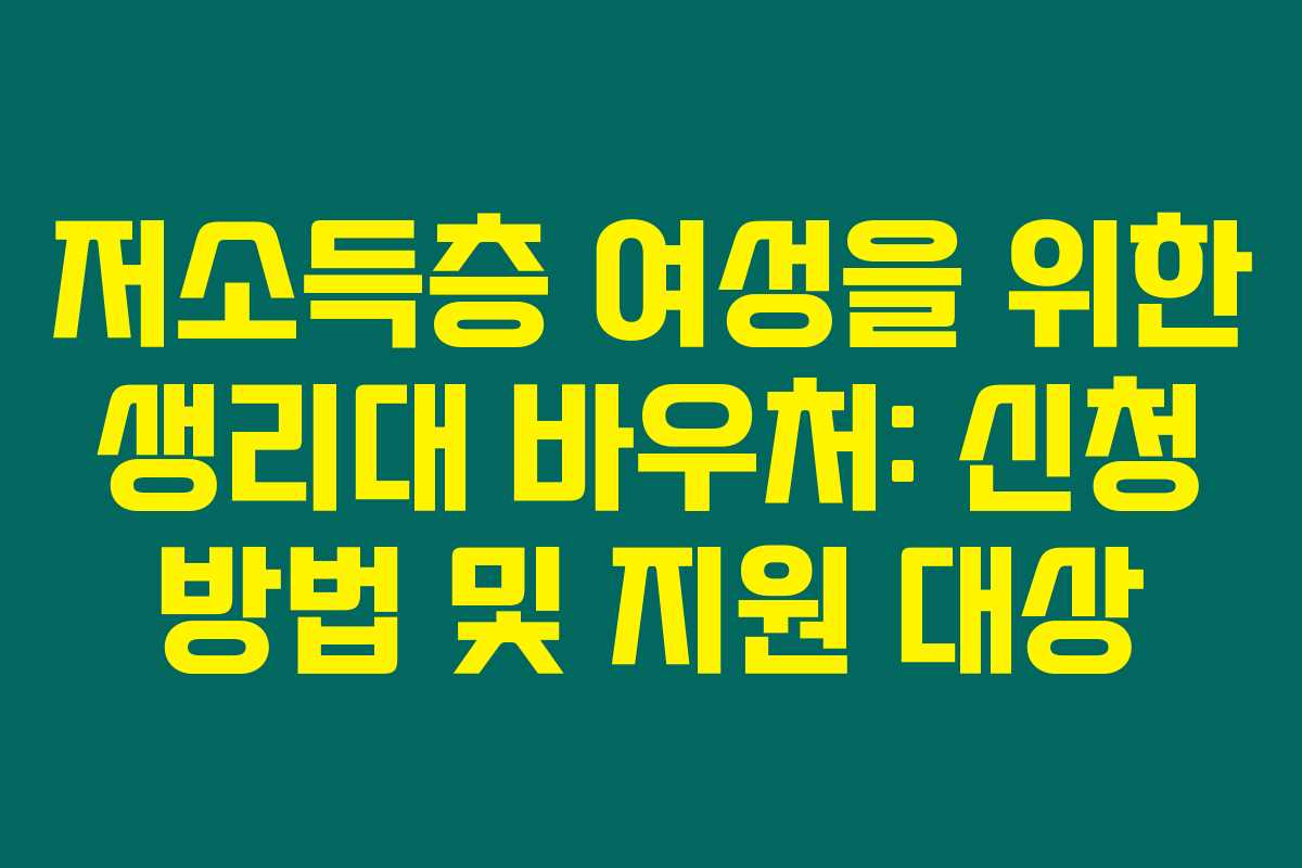 여성가족부 주관의 생리대 바우처 신청 방법은 다음과 같습니다. 경제적 부담을 덜어줄 수 있는 이 지원을 꼭 놓치지 마세요!