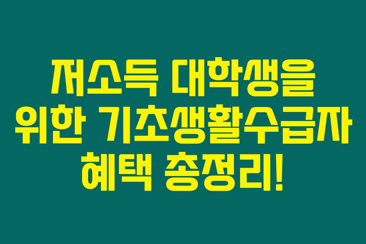 저소득 대학생으로서 기초생활수급자 혜택을 잘 활용해 나가시면, 학업과 생활의 부담을 크게 줄일 수 있습니다. 제가 직접 리서치한 바에 따르면, 현재 다양한 지원 제도가 마련되어 있으니 꼭 확인하고 활용하시길 바랍니다. 여러분의 행복한 대학생활을 응원할게요!