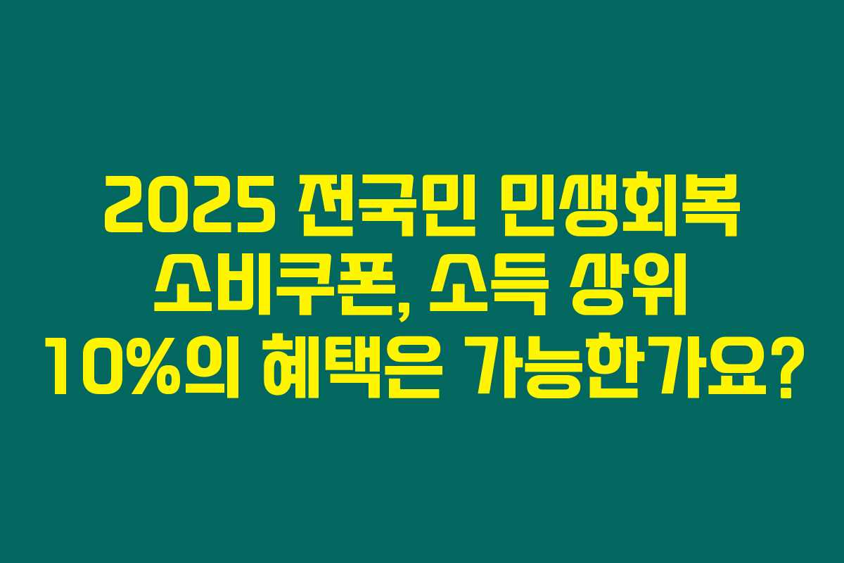 제가 직접 리서치해본 바로는, 2025년 하반기에 정부가 발표한 민생회복 소비쿠폰 제도가 국민들 사이에서 큰 관심을 받고 있더라고요. 특히 소득 상위 10%가 이 지원금을 받을 수 있는지에 대한 질문이 많았는데요. 이러한 궁금증을 해결하기 위해 이 쿠폰의 개요와 지급 대상, 기준 등을 꼼꼼히 알아보았습니다. 아래를 읽어보시면 꼼꼼한 정보를 확인하실 수 있을 거예요.