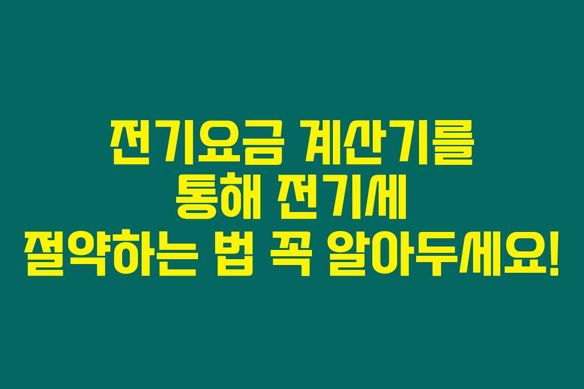전기세 절약이 필요하다면, 전기 요금 계산기를 통해 지출을 미리 예측해 보세요!