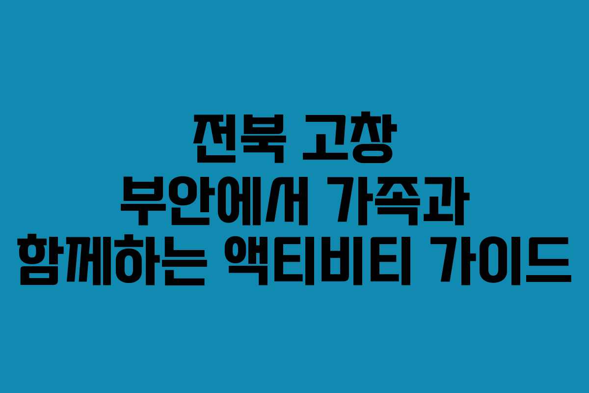 전북 고창과 부안은 가족과 함께하는 여행에 최적의 장소입니다. 다채로운 액티비티와 자연의 아름다움을 만끽하며 가족 간의 소중한 추억을 쌓아보세요!