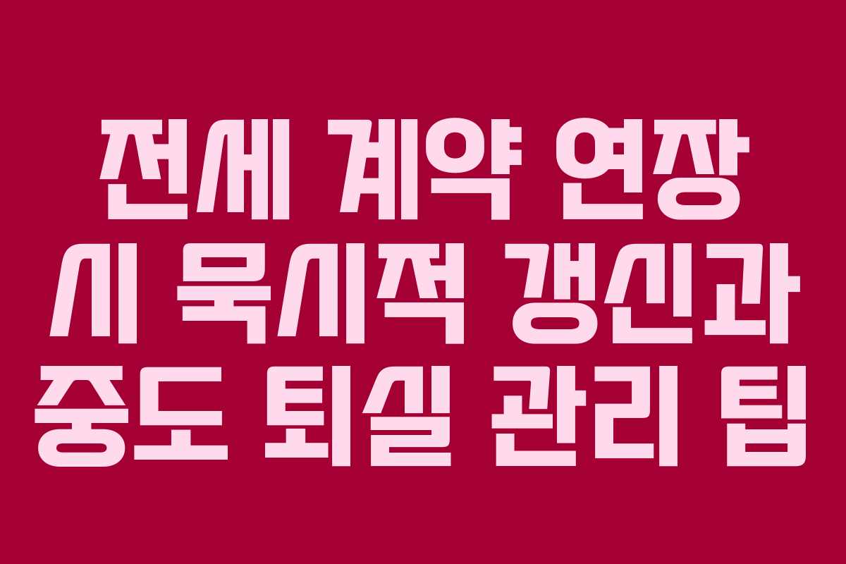 키워드: 전세 계약 연장, 묵시적 갱신, 전세계약 주의사항, 임대차보호법, 보증금 반환, 위약금, 중도 퇴실, 신규 세입자, 전세보증보험, 계약 만료, 갱신 거절,
