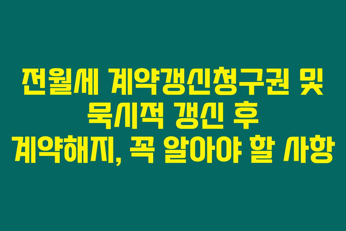 전월세 계약갱신청구권 및 묵시적 갱신 후 계약해지, 꼭 알아야 할 사항