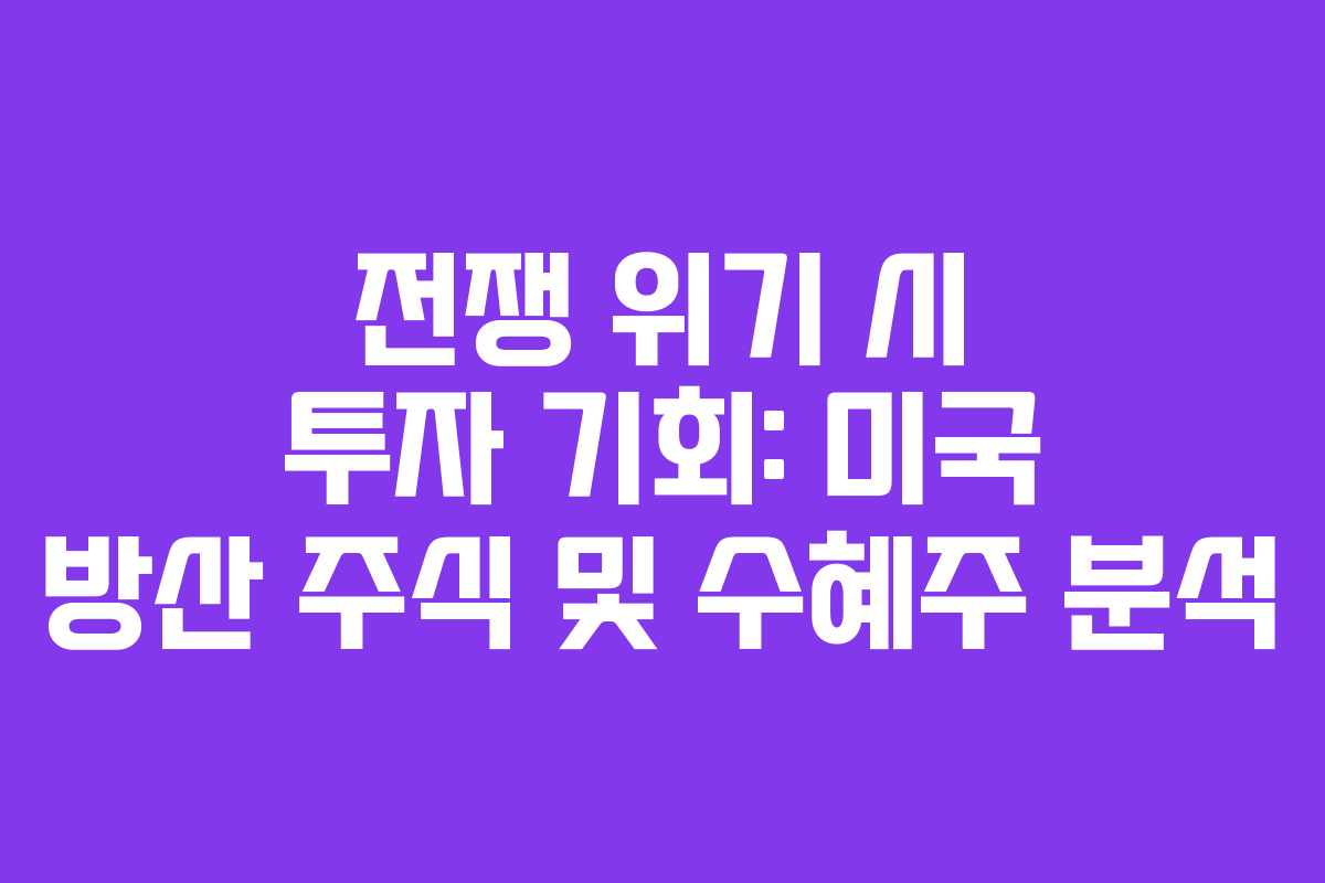 - 현금 비중 확보: 실제 충돌로 인해 시장이 급락할 경우, 우량주를 저점에서 매수할 수 있는 기회를 잡아야 한다.