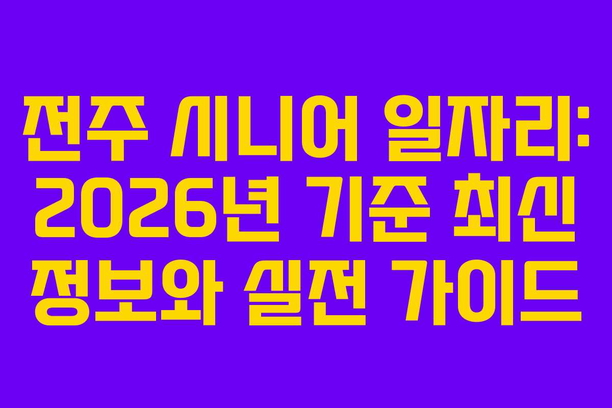 전주 시니어 일자리: 2026년 기준 최신 정보와 실전 가이드