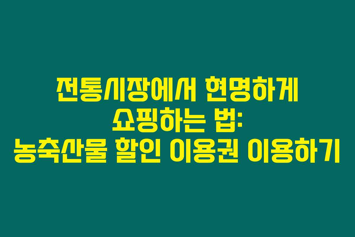 전통시장에서 구매하는 신선한 농축산물도 저렴하게 즐길 수 있는 방법이 생겼습니다. 최근 농림축산식품부는 전통시장 활성화와 소비자 혜택 확대를 위해 ‘전통시장 농축산물 할인 이용권’ 시범사업을 시작한다고 발표했어요. 아래를 읽어보시면, 이 이용권의 세부 내용과 혜택에 대해 자세히 알아볼 수 있습니다.