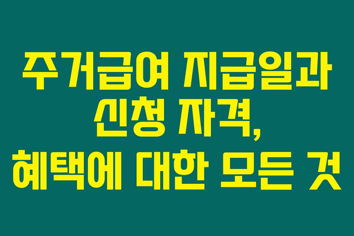 주거급여는 저소득층 가구의 주거 안정을 위한 중요한 제도입니다. 제가 직접 확인해본 결과, 주거급여의 지급일, 신청 자격 그리고 각종 혜택에 대해 알아두는 것이 도움이 될 것이라고 생각합니다. 이 글을 통해 주거급여의 전반적인 내용을 잘 이해할 수 있을 것입니다.