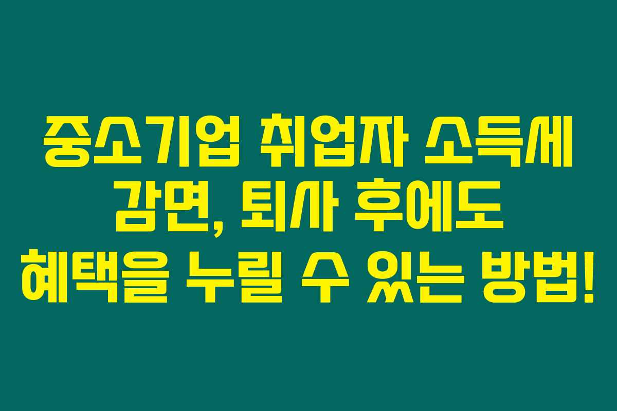 제가 직접 체크해본 바로는, 중소기업에 취업한 청년, 고령자, 장애인, 경력 단절 여성은 소득세 감면 혜택을 통해 최대 5년 동안 200만 원 한도 내에서 70%~90%까지 소득세를 감면 받을 수 있다는 사실이에요. 이는 연말정산 시 환급받을 수 있는 필수적인 혜택이지만, 다들 신청하지 않으면 혜택을 놓치는 경우가 많습니다. 아래를 읽어보시면, 이러한 혜택을 신청하는 방법과 퇴사 후에도 어떻게 혜택을 받을 수 있는지에 대해 자세히 설명드릴게요.