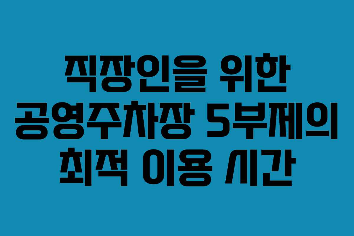 많은 직장인들이 출근할 때마다 느끼는 고충 중 하나가 바로 주차 문제입니다. 특히 도심에서는 주차 공간 부족으로 인해 스트레스를 받는 경우가 많습니다. 그런 가운데, 공영주차장 5부제는 효율적인 주차 관리를 위한 중요한 제도로 자리 잡고 있습니다. 저 역시 이러한 시스템을 활용하면서 많은 경험을 쌓았고, 그 과정에서 얻은 통찰을 여러분과 나누고자 합니다.