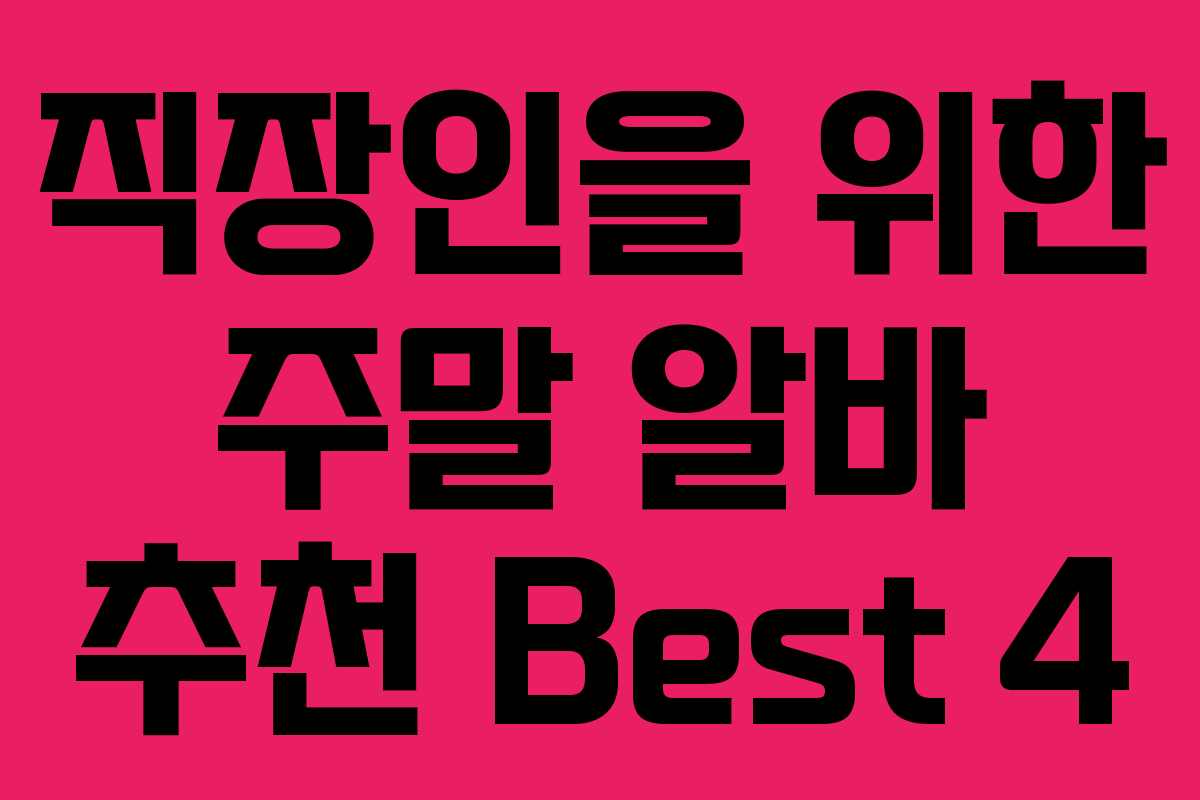 현대 사회에서 직장인으로 살아가면서 월급 외의 추가 수입을 찾는 것은 필수적인 상황이 되어버렸습니다. 물가는 오르는데 월급은 제자리인 현실 속에서 많은 직장인들이 주말을 활용해 알바를 고려하고 있습니다. 이번 글에서는 직장인이 주말에 할 수 있는 알바 종류 네 가지를 소개합니다.