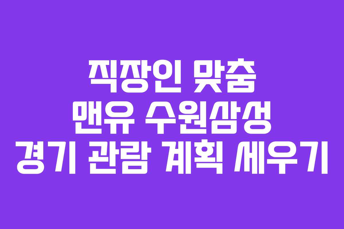 이번 맨유와 수원 삼성의 경기를 관람하기 위해서는 사전 준비가 무엇보다 중요합니다. 철저한 계획을 통해 잊지 못할 경험을 만들어보세요.