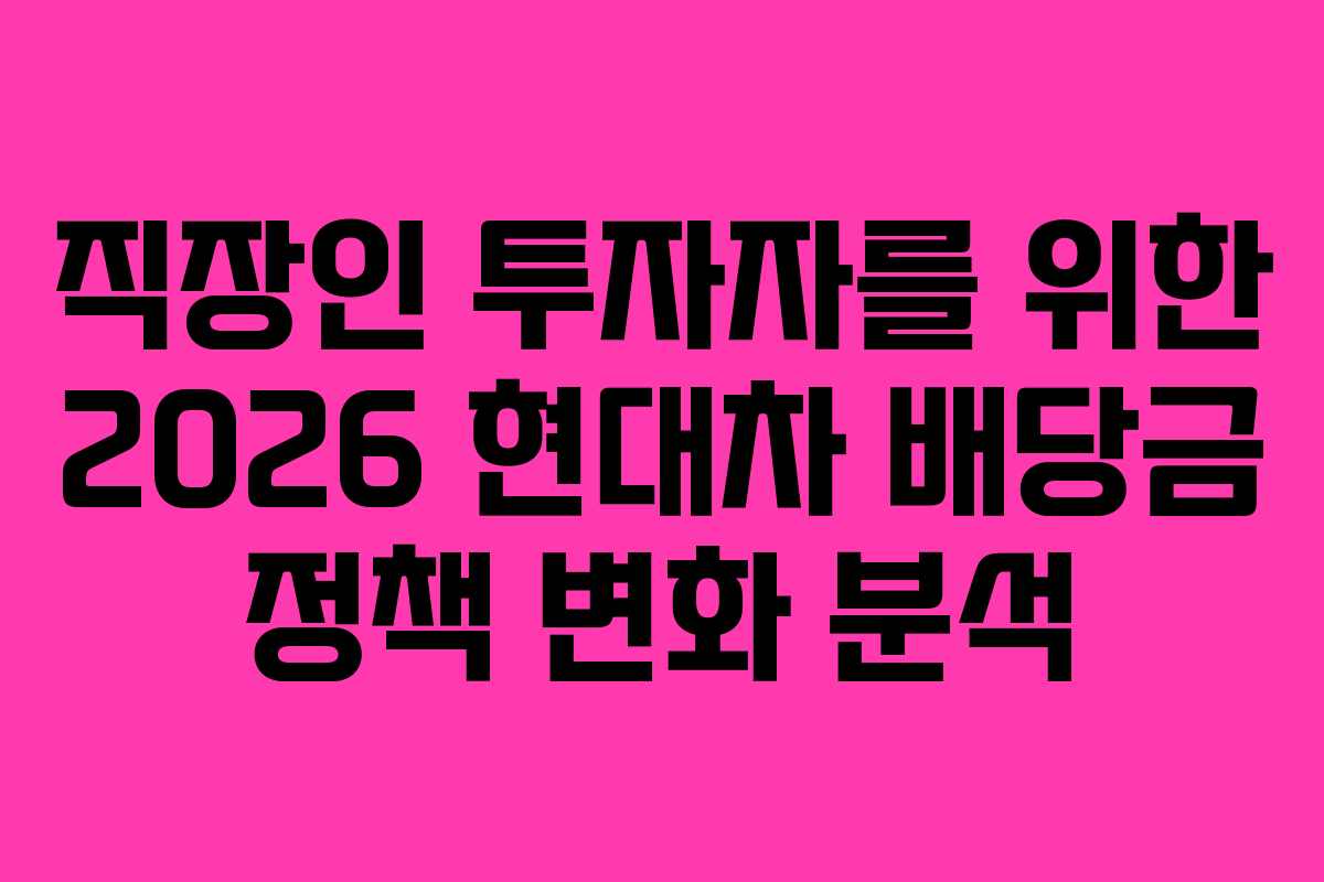 2026년은 현대자동차에게 중요한 전환점이 될 것입니다. 단순한 자동차 제조사를 넘어 ‘배당 귀족주’로의 변모가 예상되며, 이러한 변화는 직장인 투자자들에게도 큰 기회가 될 수 있습니다. 현대차는 중장기 자본 배분 전략을 통해 주주 환원 정책을 강화하며, 이에 따른 배당금 지급 일정과 전략을 충분히 이해하는 것이 필수적입니다. 제 경험을 통해, 이 글에서는 현대차의 배당금 지급 일정, 예상 배당금 규모, 그리고 투자자들이 반드시 체크해야 할 전략을 심층적으로 분석해 보겠습니다.