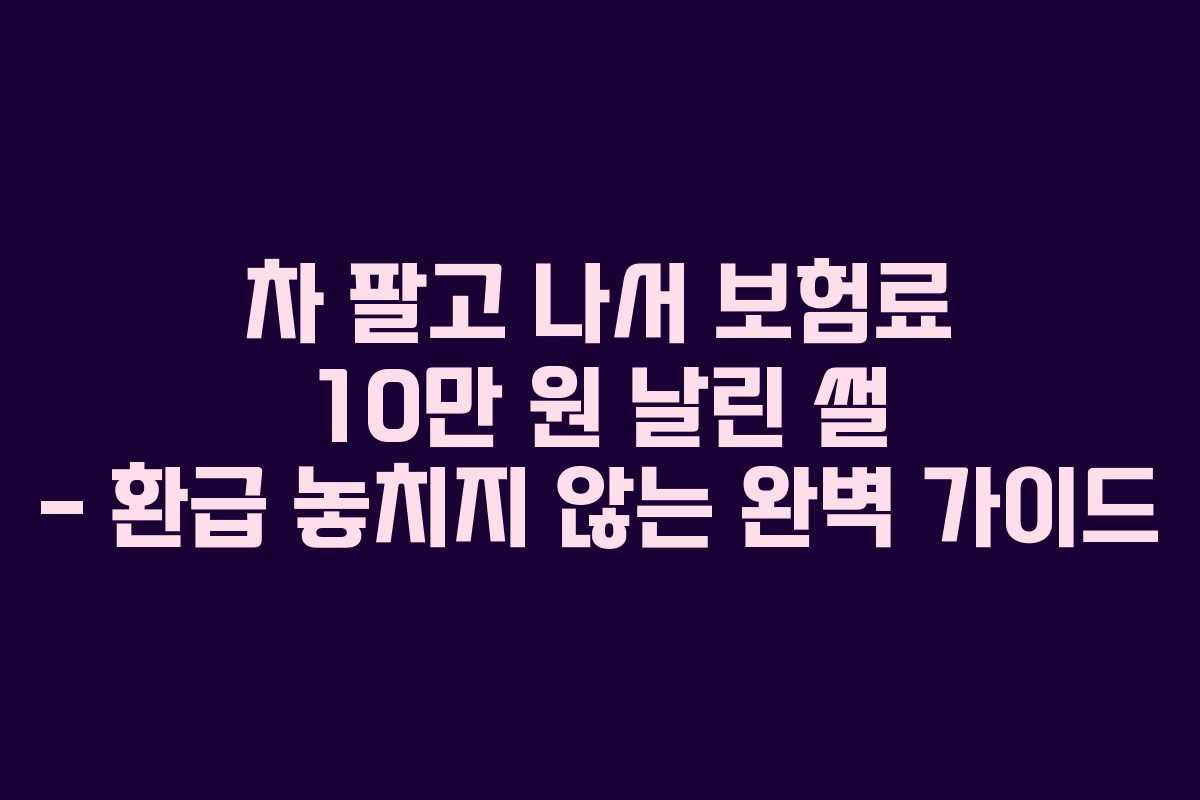 차 팔고 나서 보험료 10만 원 날린 썰 - 환급 놓치지 않는 완벽 가이드