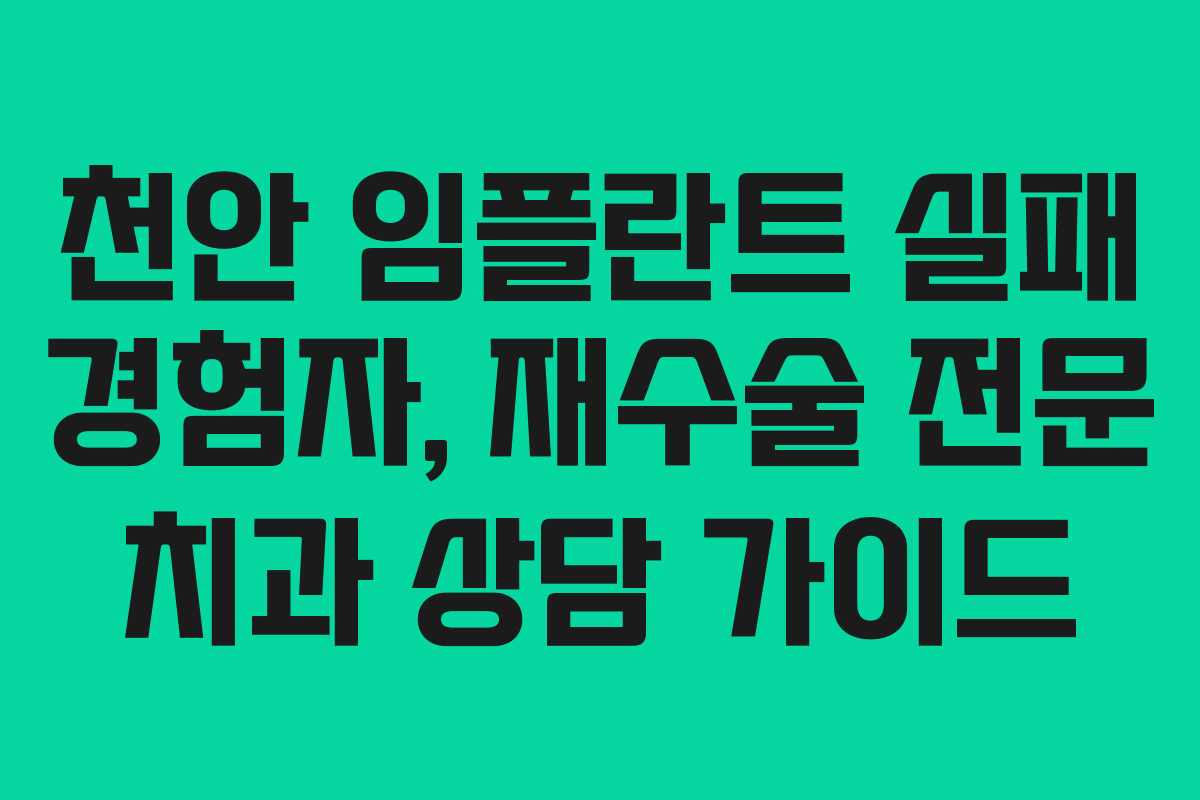 천안에는 다양한 임플란트 전문 치과가 있으며, 이들 중 여러 곳은 재수술에 대한 경험과 전문성을 갖추고 있습니다. 다음은 제가 추천하는 치과들입니다.