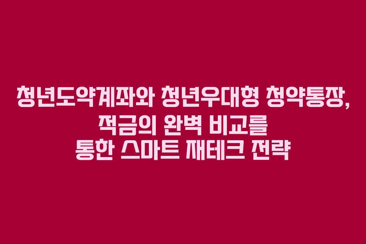 청년층의 재테크 전략은 다양합니다. 정부에서 제공하는 다양한 금융상품을 통해 자산 형성을 도모할 수 있습니다. 청년도약계좌와 청년우대형 청약통장, 그리고 일반 적금은 각각의 특징과 혜택을 가지고 있으며, 어떤 상품을 선택하느냐에 따라 재정적 성과가 달라질 수 있습니다. 이 글에서는 2026 기준으로 각각의 금융상품을 상세히 비교하고, 여러분의 상황에 맞는 최적의 선택을 할 수 있도록 돕겠습니다.