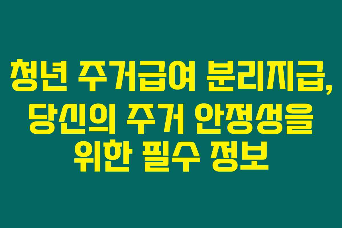 청년 주거급여 분리지급에 대해 제가 직접 경험한 내용을 바탕으로 상세히 안내해 드릴게요. 이 제도는 어렵고 힘든 주거 환경 때문에 고통받는 저소득층 청년들에게 큰 도움이 되고 있습니다. 주거급여를 통해 임차료 부담이 줄어들어 실질적인 주거 안정성을 가질 수 있게 되는 거죠. 아래를 읽어보시면 이 제도에 대한 정보 얻는 데 많은 도움이 될 거예요.