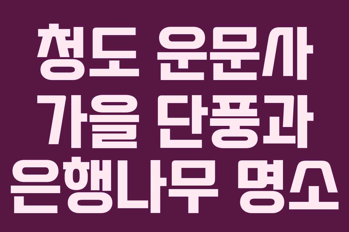 청도에는 운문사 외에도 다양한 단풍 명소가 있습니다. 예를 들어, 인근의 다른 사찰이나 공원에서도 아름다운 가을 풍경을 즐길 수 있습니다.