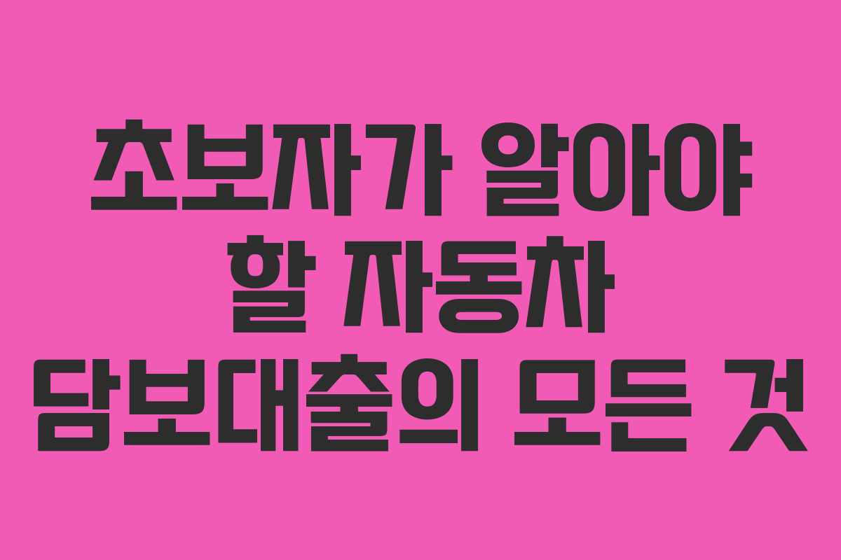 초보자가 알아야 할 자동차 담보대출의 모든 것