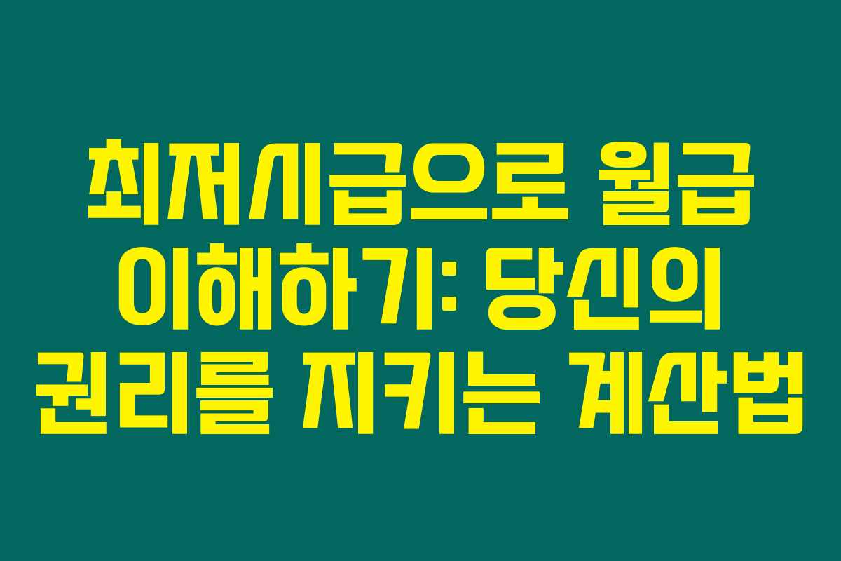 최저시급 월급 계산법에 대해 자세히 알아보겠습니다. 제가 직접 경험한 바로는 최저임금과 월급 계산의 중요성을 많이 느꼈어요. 최근 몇 년 동안 최저임금이 계속 변화하면서 많은 사람이 그에 대한 정확한 이해를 가지고 있어야 한다고 생각해요. 이번 글을 통해 최저시급을 기반으로 한 월급 계산법과 이를 통해 얻을 수 있는 유익한 정보들을 소개할게요.