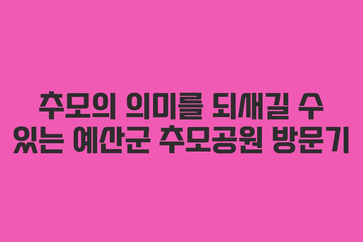 예산군 추모공원은 고인을 기억하고 추모하는 데 적합한 장소로, 가족과 함께 소중한 시간을 보낼 수 있는 공간이다. 매년 명절마다 이곳을 찾아가는 것은 고인과의 연결을 더욱 깊게 만들어 주며, 다음 명절에 또 방문할 계획을 세우게 만드는 특별한 의미를 지닌다.