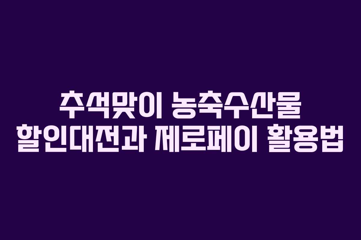 추석을 맞이하여 농축수산물의 할인 혜택을 받을 수 있는 기회가 찾아왔습니다. 정부에서 실시하는 할인대전을 통해 최대 60%까지 할인된 가격으로 다양한 식품을 구매할 수 있습니다. 이번 글에서는 할인대전의 운영 기간, 참여 매장, 제로페이 이용 방법 등을 정리해 드리겠습니다.