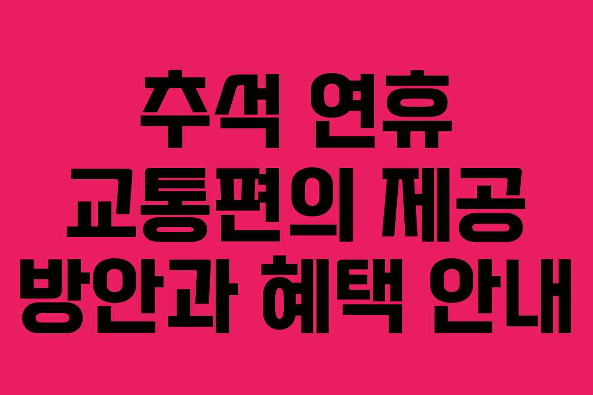 각 교통 분야에서 제공하는 다양한 혜택과 서비스는 추석 연휴를 더욱 편리하게 만들기 위한 노력의 일환으로, 이용객들이 보다 안전하고 편리하게 이동할 수 있도록 지원한다. 이러한 혜택을 적극 활용하여 즐거운 연휴를 보내길 바란다.