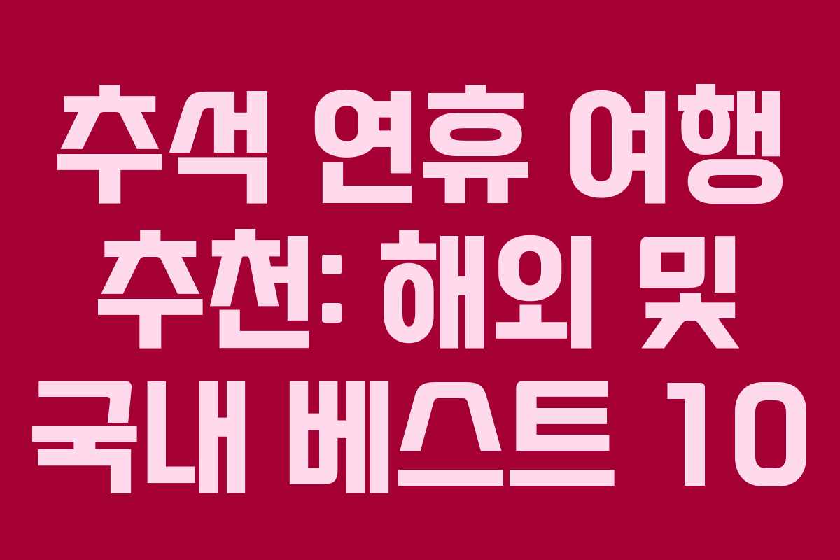 추석 연휴를 맞아 여행을 계획하고 계신가요? 2023년 추석 연휴는 9월 28일부터 10월 3일까지 이어지는 긴 황금 연휴로, 많은 분들이 여행을 떠나고 싶어 하는 시점입니다. 이번 포스트에서는 해외와 국내 여행지 각각 베스트 5곳을 추천드립니다. 날씨 좋은 곳들을 엄선했으니 여행지를 선택하는 데 참고하시기 바랍니다.