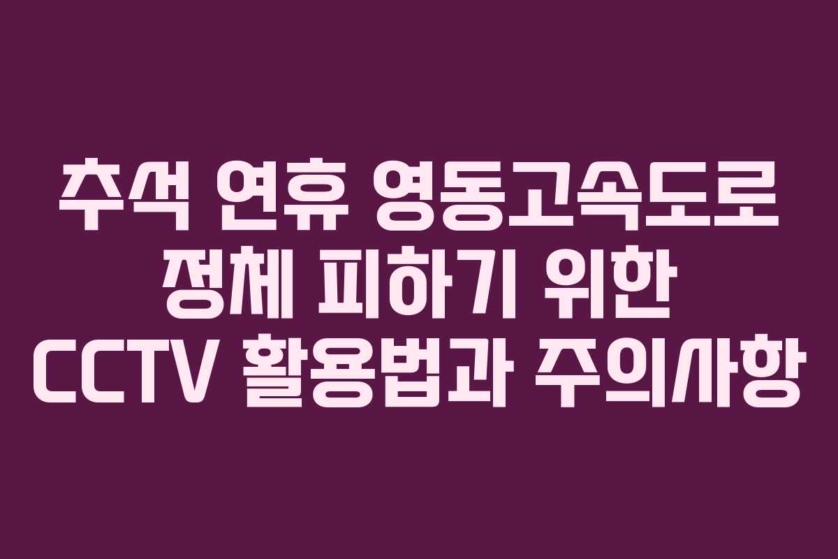 정체가 심각할 경우 CCTV를 활용하여 국도나 대체 고속도로를 선택할 수 있다. 이로 인해 추석 기간에도 이동 시간을 줄일 수 있으며, 불필요한 대기 시간을 최소화할 수 있다.