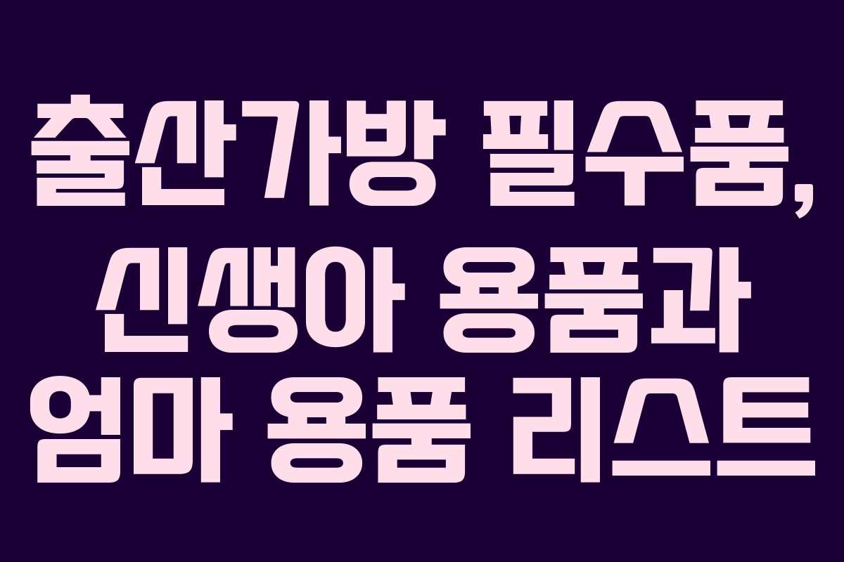 출산가방은 신생아 용품과 엄마 용품으로 나누어 준비해야 합니다. 신생아 용품은 아기가 태어난 후 즉시 필요할 물건들로 이루어져 있으며, 엄마 용품은 병원에서의 회복과 편안함을 위한 것들입니다.