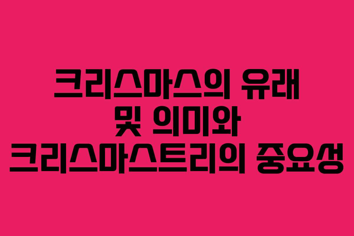 크리스마스는 매년 12월 25일에 예수 그리스도의 탄생을 기념하는 날로, 종교를 넘어 전 세계적으로 사랑받는 축제로 자리 잡았습니다. 가족과 친구들이 함께 시간을 보내며 서로의 마음을 나누는 특별한 날입니다. 이 글에서는 크리스마스의 기원과 크리스마스트리가 가지는 의미에 대해 알아보겠습니다.