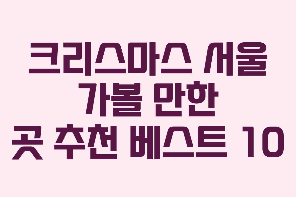 2024년 크리스마스를 맞이하여 서울에서 특별한 추억을 만들 수 있는 명소를 소개합니다. 크리스마스의 아름다운 분위기를 만끽할 수 있는 장소부터 다양한 즐길 거리까지, 가족과 친구들과 함께 방문하기 좋은 곳들을 추천합니다.