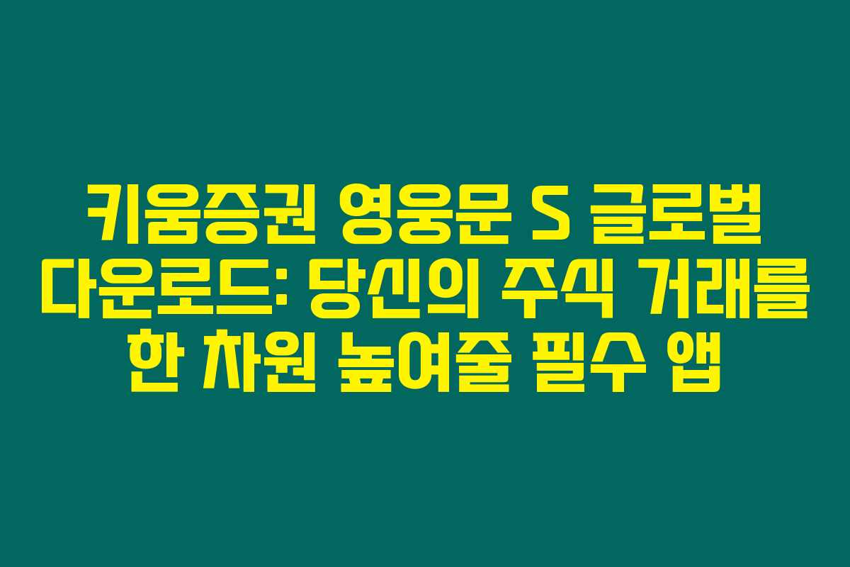 키움증권의 영웅문 S 글로벌을 아직 다운로드하지 않았다면 정말 큰 손해를 보고 있는 걸지도 모릅니다. 국내외 주식 거래가 자유롭게 이뤄지는 시점에서 이 플랫폼은 투자자들에게 필수적인 도구가 되었어요. 오늘은 영웅문 S 글로벌의 장점과 다운로드 방법을 자세히 알아볼게요.