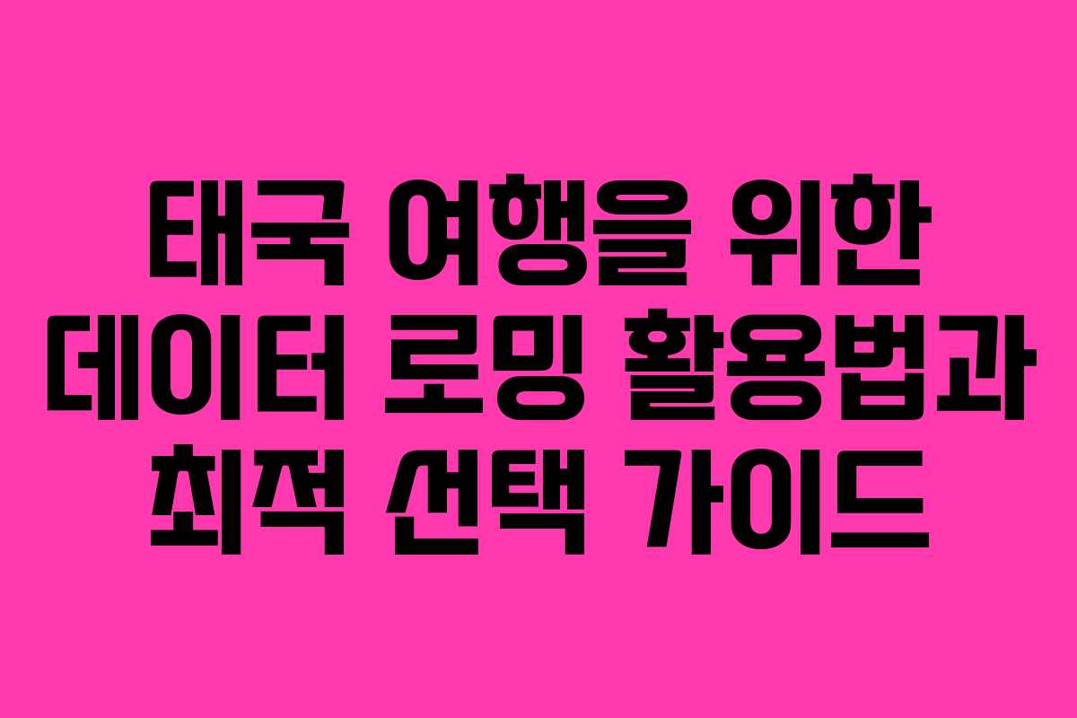 태국 여행에서 원활한 인터넷 사용을 위한 데이터 로밍은 필수적입니다. 여행 중 지도 검색, 맛집 탐방, 실시간 번역 등의 기능은 여행의 편리함을 더해줍니다. 이 가이드에서는 태국 여행 중 데이터 로밍을 적절하게 활용하고, 나에게 맞는 최적의 선택을 하는 방법을 제시합니다.