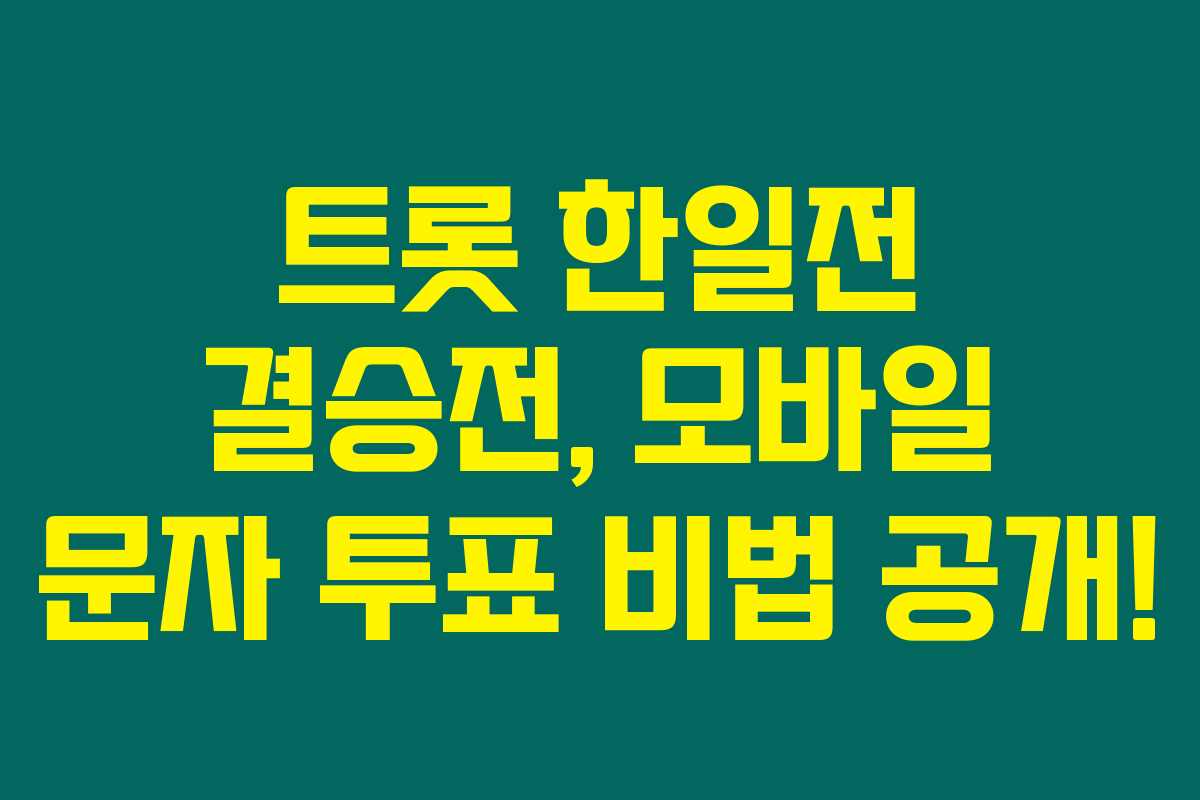 한일 트롯 가왕전에서 투표하는 방법을 알고 싶다면 여기 주목해보세요. 한국과 일본에서 선보이는 이 특별한 경연은 트로트 팬들에게 큰 관심을 받고 있습니다. 이번 포스팅에서는 한일 트롯 가왕전의 모바일 문자 투표 방법과 이 대회에 대한 전반적인 정보를 제공할게요.