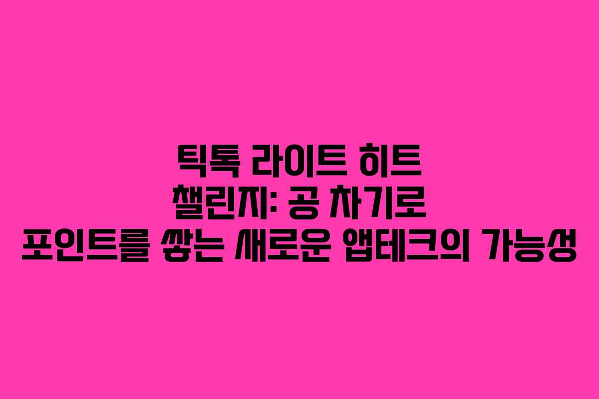 틱톡 라이트 히트 챌린지에서 성공적으로 포인트를 쌓기 위해서는 다음과 같은 조건이 필요합니다. 사용자는 게임에 자주 참여해야 하며, 집중력을 가지고 공을 차는 것이 중요합니다. 게임이 간단하다는 점에서 사용자들은 쉽게 접근할 수 있지만, 자주 참여하여 경험을 쌓는 것이 더욱 효과적입니다.
